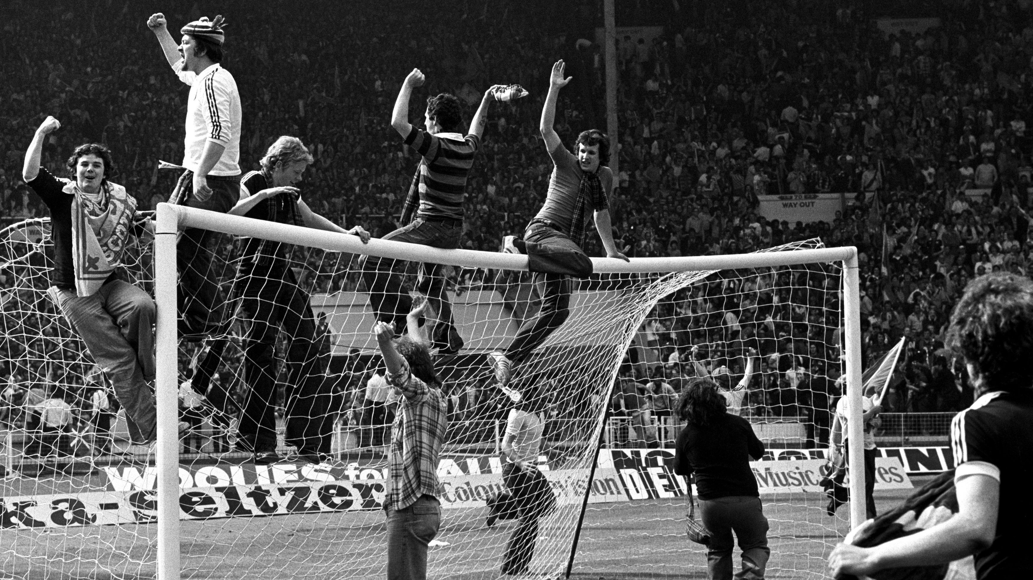 Scotland fans flood onto the wembley pitch to celebrate the victory, 1967.